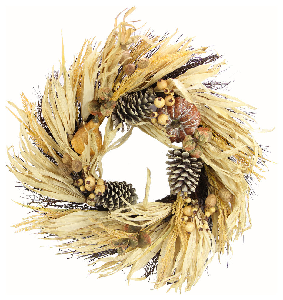 24" Artificial Pumpkin Wheat Berry with Corn Husk Wreath