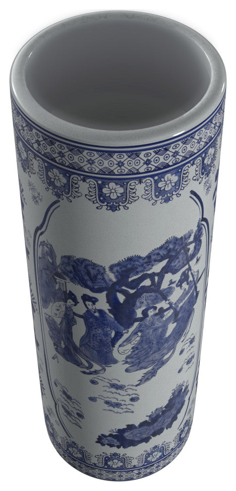 24" Ladies Blue and White Porcelain Umbrella Stand
