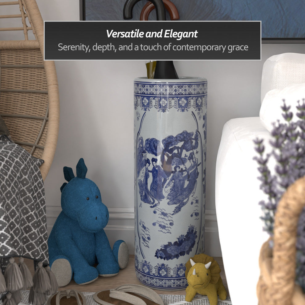 Porcelain Umbrella Stand: A functional and stylish solution for keeping your entryway or hallway organized and tidy. This classic stand adds an elegant touch to and blends seamlessly with traditional, contemporary, eclectic, or boho decor.