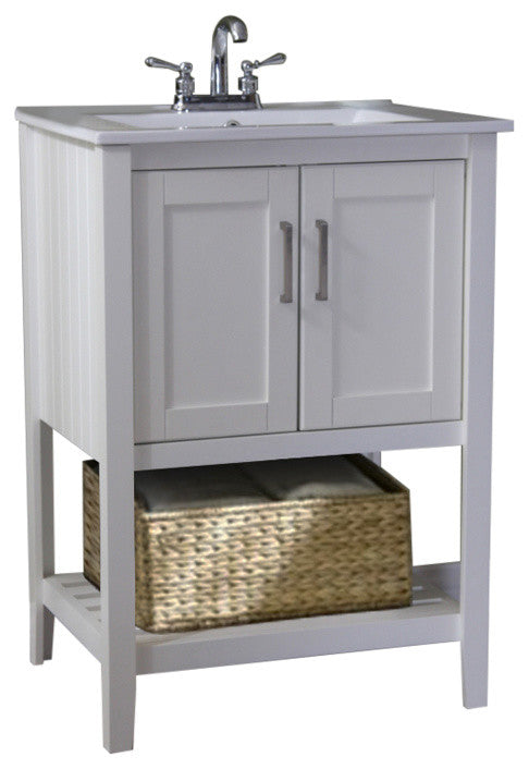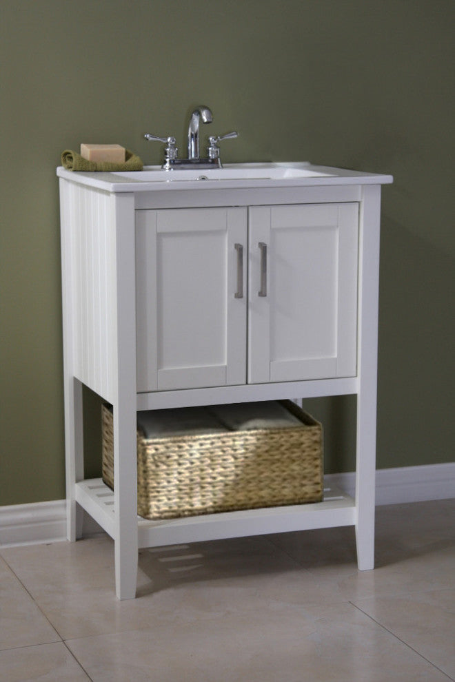 24" White Sink Vanity With Basket Without Faucet . Legion Furniture 24" White Sink Vanity With Basket Without Faucet . Cabinet Material: Solid poplar, MDF/Veneer . Dimensions : 23.25 X 18.75 X 34 . Top: White Ceramic Top . Sink :White Ceramic Sink . Assembly :No Assembly required . Not included :Faucet