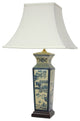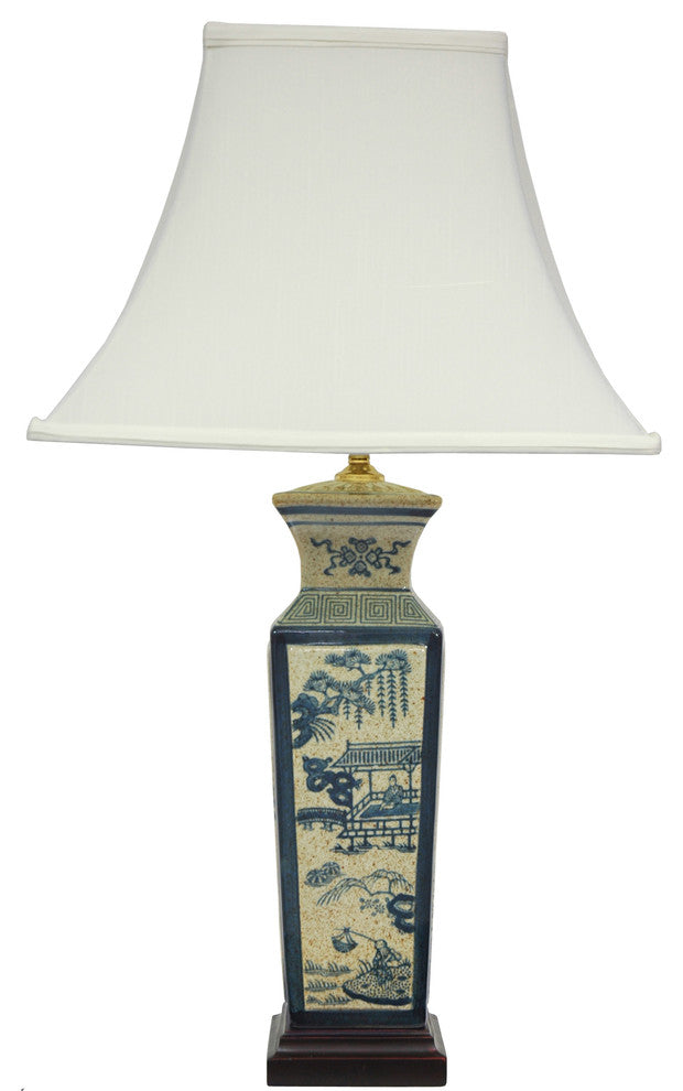 Elegantly hand-crafted by artisans in China''s Guangdong province, this beautiful piece combines a Song dynasty style porcelain vase with a carved wooden base. The porcelain part of the lamp features a textured glaze sure to add a colorful accent to any room. A fabric shade on a steel frame completes the design. This porcelain lamp features a three-way light fixture and includes a soft hand made shade.