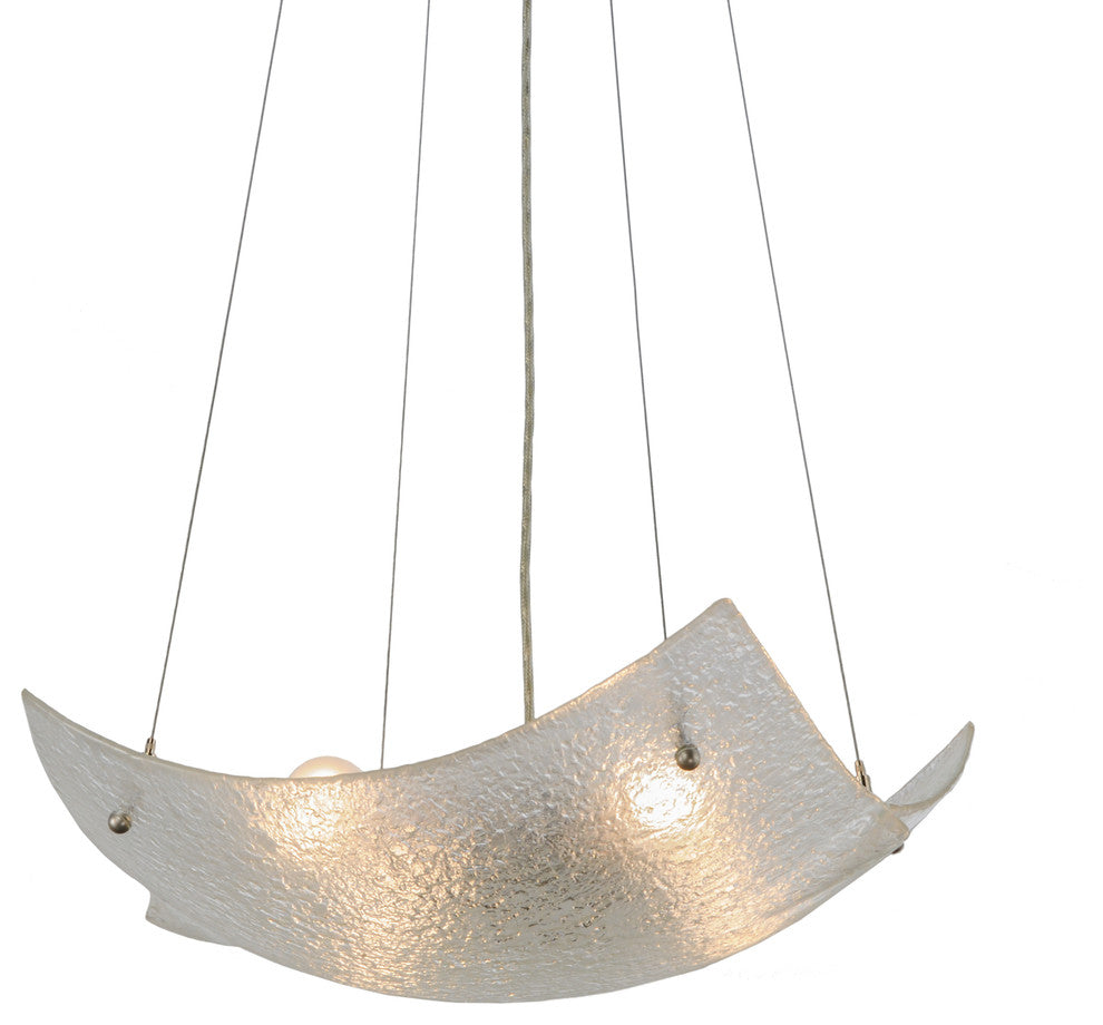 Hot glass sculpted into a cool contemporary lighting design. Clear Crinkled textured fused glass features a crystallized ice-like hue and innovative shape that evokes a lofty look of flight in mid-air. Ideal for dining and living rooms, kitchens and lounges, boutiques, restaurants and lobbies. Custom crafted by Meyda artisans in our Yorkville, NY manufacturing facilities. Custom designs, colors and shapes. Energy efficient lamping options.