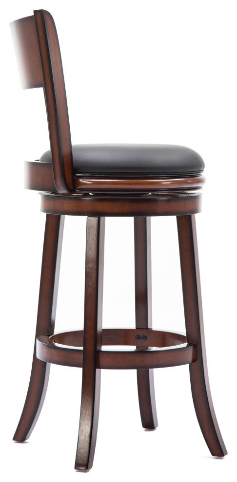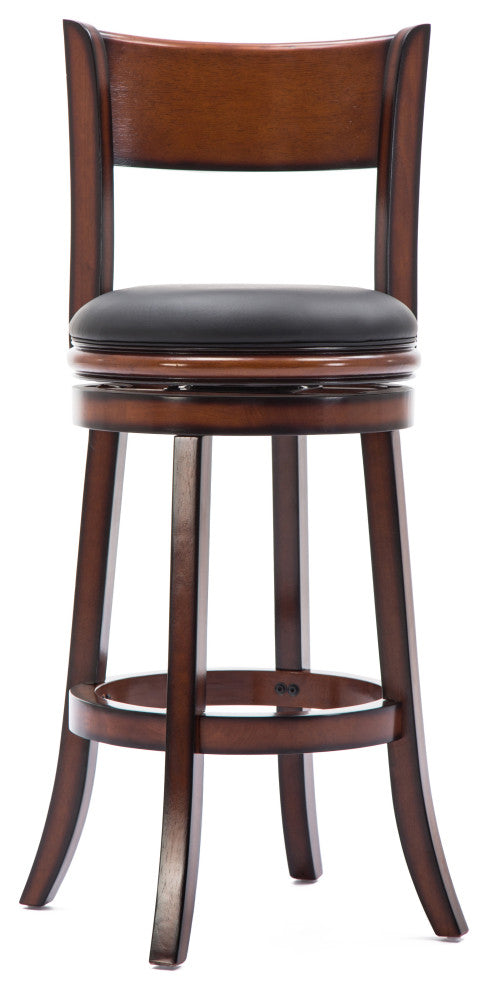 29" PALMETTO SWVL STOOL [BRANDY]48129 29" PALMETTO SWVL STOOL [BRANDY], Not just a handsome face, the Palmetto Swivel Stool is also a wise investment thanks to its durability and stability features. This traditional swivel stool features a built-in backrest, footrest, and high-density foam cushioning to keep you comfortable during long stretches. Meanwhile, flared legs, a double-seat apron, stability stretchers, and a steel ball-bearing swivel mechanism all promise longevity and durability of design. For your peace of mind, the Palmetto is performance tested by leading worldwide testing facilities. Its solid hardwood frame and bonded leather upholstery are available in your choice of select color combinations, so you can pick the right match for your home bar, kitchen, or game room. Also available in counter heights.Model No : 48129Brand : BoraamCountry of Origin is Vietnam29" PALMETTO SWVL STOOL [BRANDY]Color : 29" - BrandyMaterial : Rubberwood, Faux LeatherConstructed from solid hardwoodHigh-density foam cushioning and bonded leather upholsteryFootrest provides strength and comfortSlightly flared legs for stable seating360-degree steel ball-bearing swivel plateColor and height options availableColor: 29" - BrandyDimension (W x D x H): 18 x 19.5 x 43.5