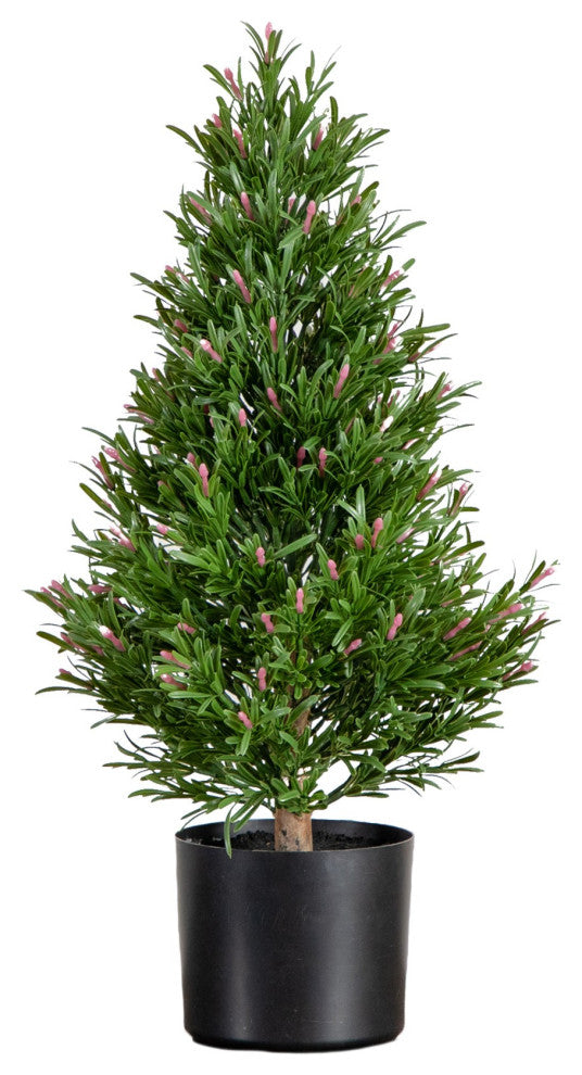 Decorate your space with the timeless elegance of our UV resistant artificial rosemary cone topiary tree, a testament to nature''s best. Meticulously crafted through a special process to withstand the elements, making it suitable for both outdoor patios and indoor spaces offering the lush allure of rosemary without any of the upkeep. At a height of 2-Ft and nestled in a classic nursery planter, this tree promises to remain verdant and vibrant throughout the seasons effortlessly transitioning from the cozy ambiance of winter to sunny, bright summer. Place it on your porch for an instant touch of sophistication that says "welcome" all year round.