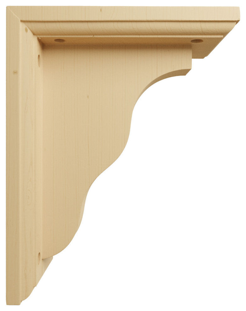 3 1/2"W x 7"D x 9"H Hamilton Traditional Bracket, Alder. Authentic wood brackets are the perfect choice for supporting countertops and shelving. With the proper installation, these wood brackets can support up to 250lbs, which gives you the flexibility to use a decorative bracket for support. Available in a variety of species, these brackets ship to you fully sanded and ready for your paint or stain.