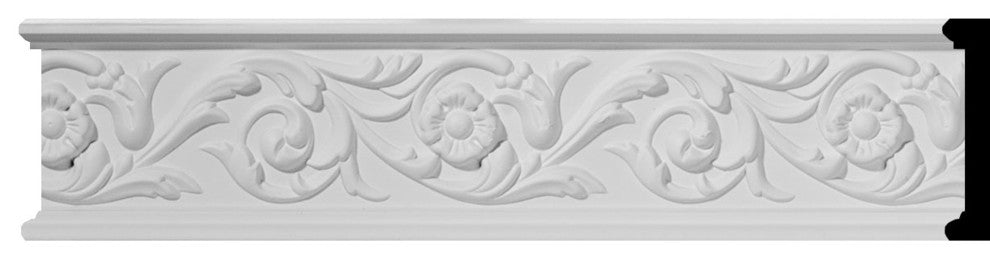 3 1/4"H x 3/4"P x 96"L Delfina Running Leaf Chair Rail. Beautiful crown moulding is a great way to separate and define each room. With each design modeled after traditional plaster type mouldings, our lightweight polyurethane mouldings give the same rich detail, yet at a fraction of the cost. Most moulding profiles can be partnered with our do-it-yourself corner blocks that means no miter cutting for you and most rooms can be completed in ours instead of days. Another benefit of polyurethane is it will not rot or crack and is impervious to insect manifestations. It comes to you factory primed and ready for your paint, faux finish, gel stain, marbleizing and more.