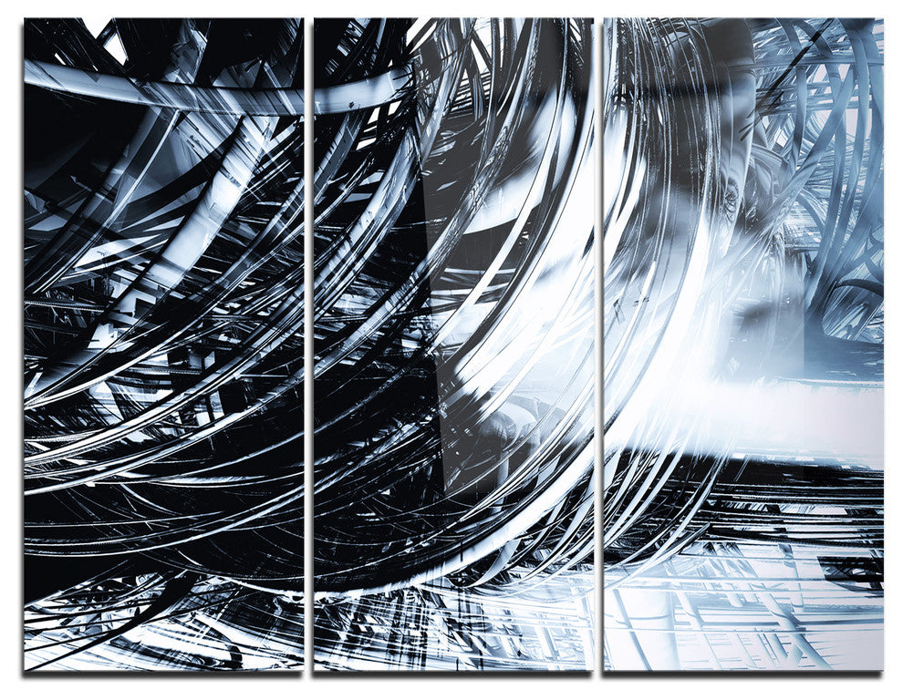 "3-D Abstract Art Black Spiral" Digital Metal Wall Art, 3 Panels, 36"x28"