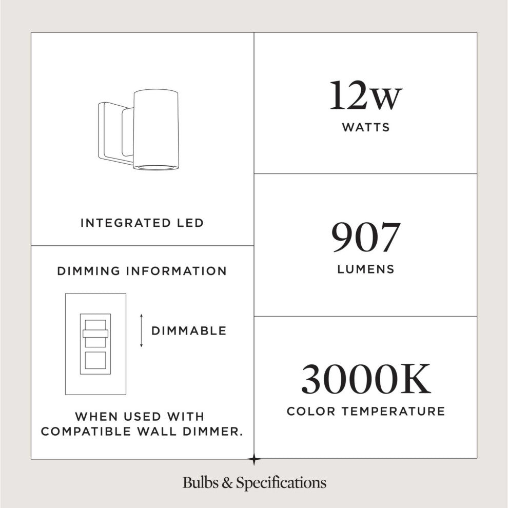 Sleek, 3" LED cylindrical forms in elegant finish selections. Die-cast aluminum wall brackets and heavy-duty aluminum framing. Fade and chip-resistant. CSA listed for wet locations. Can be used indoor or outdoor. Ideal for residential and commercial applications.