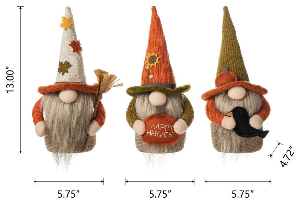 3-Piece Set 13"H Fall Fabric Gnome