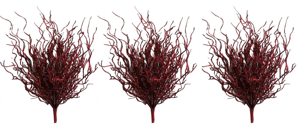 3 Pieces 18" Glitter Twig Bush Christmas Spray, Red