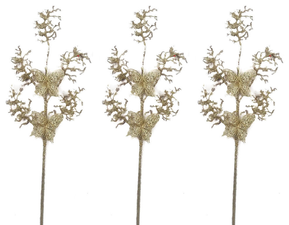 3 Pieces 30" Glitter Coral and Butterfly Christmas Spray, Champagne