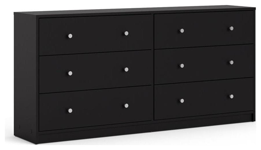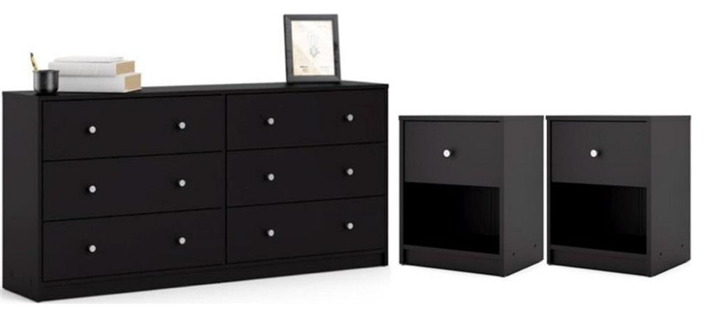 Included Items: • 1 Drawer Nightstand in Black x 2 • Contemporary 6 Drawer Double Dresser in Black x 1For quicker processing, your order could be split into separate packages. Contemporary 6 Drawer Double Dresser in BlackOrganize your wardrobe with the Home Square 6 Drawer Double Dresser. The simple, sophisticated design features six drawers with high sides, clean lines and a smooth finish. Equally suited for the kid"™s room or master bedroom, the double dresser is a versatile piece of furniture, offering roomy storage for all your organizational needs. The Home Square 6 Drawer Double Dresser is traditional Danish design and produced with a fade resistant foil surface, which is easy to clean. Combine this chest with coordinating Home Square items to complete the look.Features: • Contemporary style fits any décor • Six drawers provide ample storage • High drawer sides • Plastic pewter colored drawer handles offer a nice accent • Drawers retract smoothly on plastic glides • Product is shipped in 1 box • Suggested number of people for assembly is 2 • Made from engineered wood • Made in Denmark • Scandinavian look and design • Includes assembly manual and all necessary hardware and fasteners. • Components are pre-drilled and pre-cut ready for easy assembly!Specifications: • Product Dimensions: 56.32" W x 12.46" D x 26.89" H • Product Weight: 78.48 LBS • Product Color: Black 1 Drawer Nightstand in BlackThe clean, simple lines of the Home Square 1 Drawer Nightstand maximizes storage and style. With high drawer sides, the nightstand provides the perfect storage solution for your bedtime essentials. Stack bedtime reading on the shelf and store chargers and other items not in use in the drawer. The Home Square 1 Drawer Nightstand is traditional Danish design and produced with an easy to clean, fade resistant foil surface. Combine this nightstand with coordinating Home Square items to complete the look.Features: • Contemporary style fits any decor • One drawer and one shelf provide ample storage space for your books, chargers or private belongings • High drawer sides • Plastic pewter colored drawer knobs offer a nice accent • Drawer retracts smoothly on plastic glides • Product is shipped in 1 box • Suggested number of people for assembly is 1 • Made from engineered wood • Made in Denmark • Scandinavian look and design • Includes assembly manual and all necessary hardware and fasteners. Components are pre-drilled and pre-cut ready for easy assembly!Specifications: • Product Weight: 15.21 lbs • Product Dimensions: 19.06" H x 14.92" W x 11.85" D • Product Color: Black