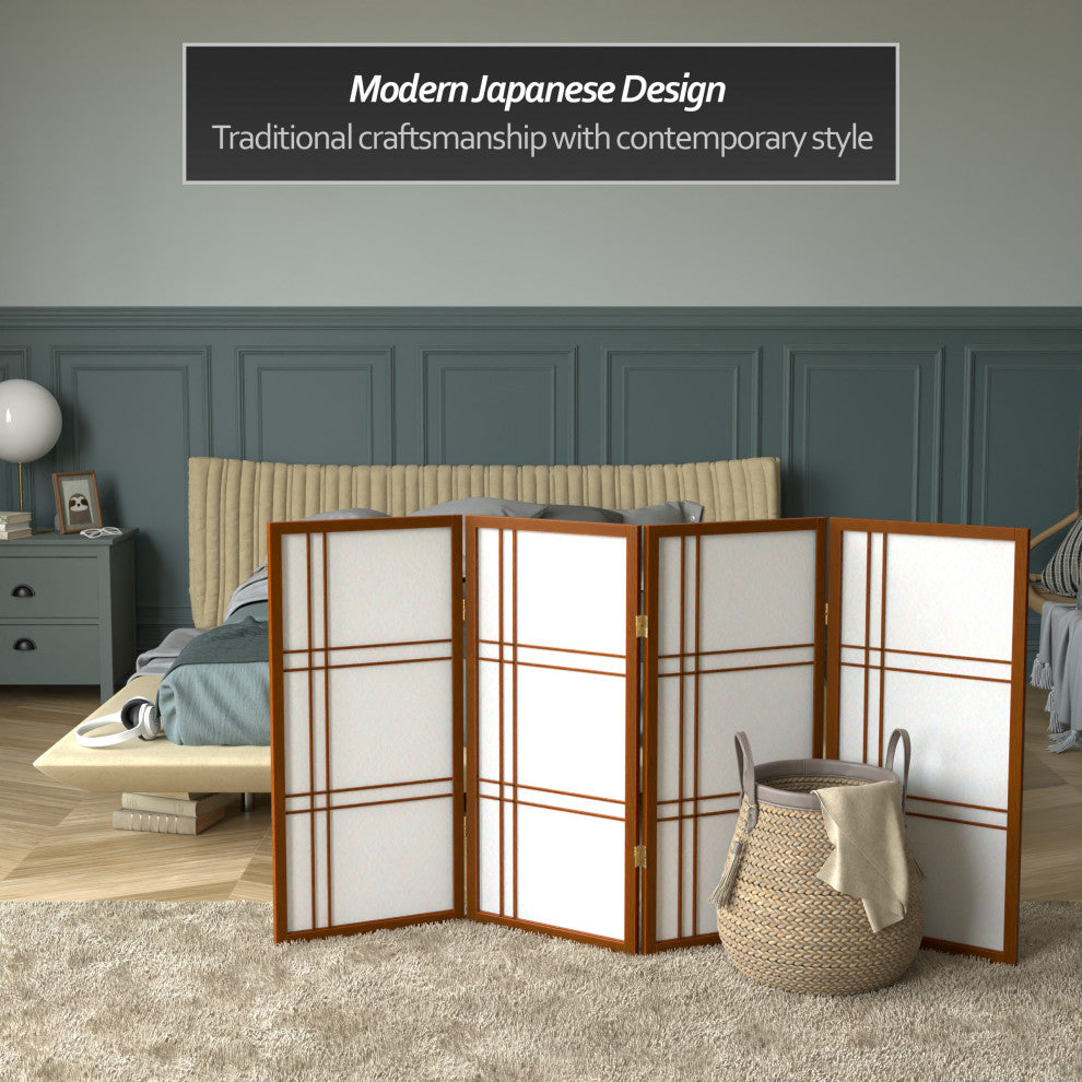 3' Tall Double Cross Shoji Screen, Walnut, 4 Panels