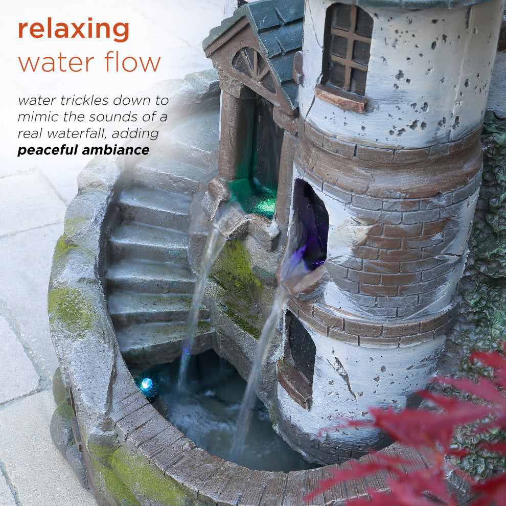 35" Tall Outdoor Tower Castle Fountain with Color Changing LED Lights