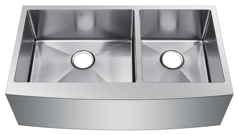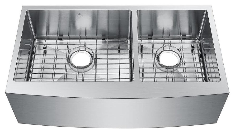 Starstar Apron undermount stainless steel sinks combine fashion with function to create a contemporary look for the kitchen. Handcrafted from premium 16 gauge 304 stainless steel for maximum durability, the extra-deep basins accommodate large dishes with ease. The four corners are creative more convenience to clean the dirt. The clean lines and apron front design complement any d̩cor, from traditional to transitional to modern. All starstar kitchen sinks are equipped with top-level soundproofing, including thick rubber dampening pads. Each sink is additionally treated with protective pads to reduced the dampens sound. The corrosion-resistant surface is further protected from rust and oxidation by a meticulous finishing process. This stylish double bowls sink provides a lifetime of functionality.For added convenience,two grids, a basket strainer drain included free with purchase. For easy installation, all mounting hardware is provided. Experience Starstar High Quality and bring your kitchen bright to life.