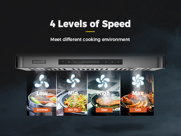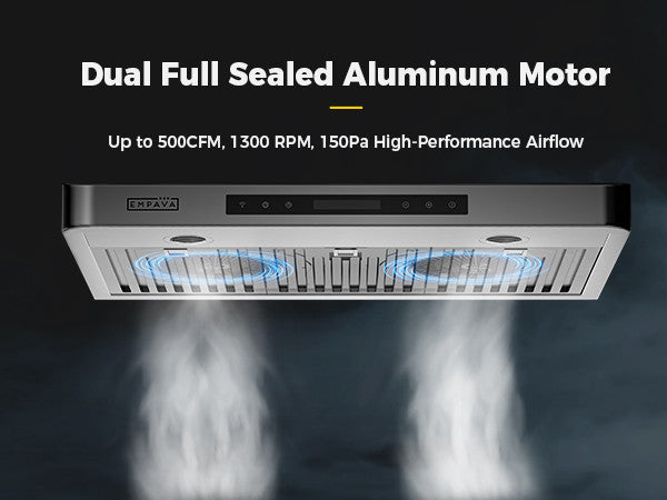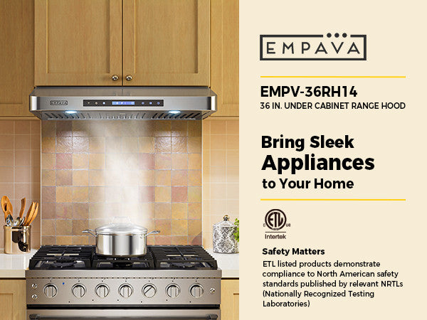 The 36" 500 CFM 4-Speed Under Cabinet Range Hood with the USA and Canada ETL Certified Is A Perfect Combination of Style and Practicality. The Soft-Touch Controls and a LCD Screen Design Creates A Focal Point with A Distinctive Modern Look. The Ultra-Quiet Motor Do an Incredible Job at Quickly Remove Smoke and Other Cooking Odors from the Air. Removable, Reusable, Dishwasher-Safe Stainless-Steel Filter for Easy Cleaning and Maintenance. Two Bright LEDs Shine Light on Your Stovetop for Better Cooking Visibility. The Ventilation Hood Can Be Set to Switch Off Automatically After 1 or 15 Minutes. During the Past Years, Empava Range Hoods Have Been A Very Popular Choice for Kitchen Upgrades and New Builds.Range Hood Dimensions: 36 In. W X 22 In. D X 6 In. H.6" Top Round Adapter, A 3-1/4" X 10" Top Rectangular Adapter and A 3-1/4" X 10" Rear Rectangular Adapter for Different Duct Size.Constructed with 18-Gauge Stainless Steel for Exceptional Resistance to Corrosion and Rust.Can Be Installed in the Way of Under-Cabinet and Wall-Mounted, According to Your Specified Need in Kitchen.The Energy-Efficient, 2x 1.0-Watt GU10 LEDs That Mounted Directly Below the Range Hood Are Long-Lasting and Provide High Lumen Lighting for Better Visibility at Night.The Panel with Wireless Remote Control (Not Including the Battery) Is Touch-Sensitive That Reacts Even When Pressed Lightly.