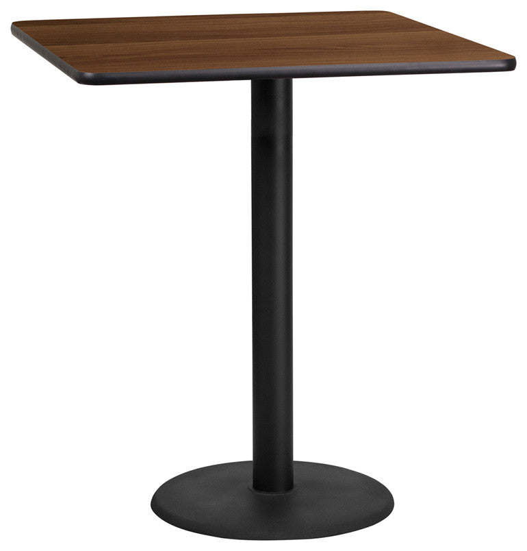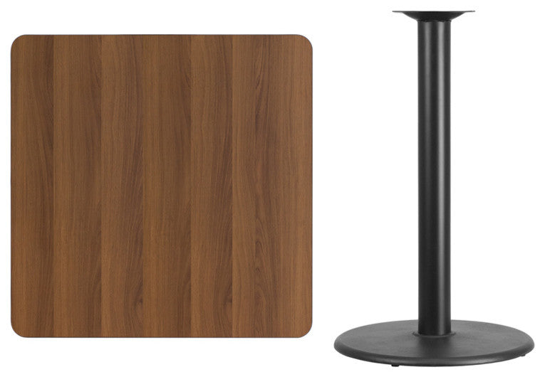 36'' Square Walnut Laminate Table Top with 24'' Round Bar Height Table Base