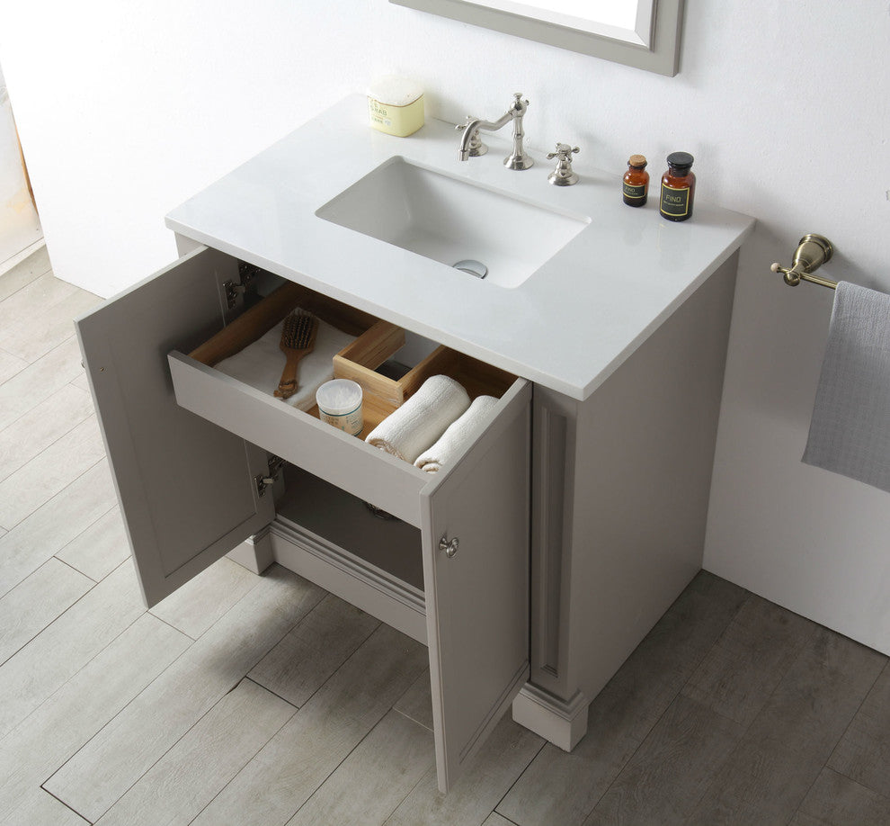 36" Wood Sink Vanity With Quartz Top-No Faucet