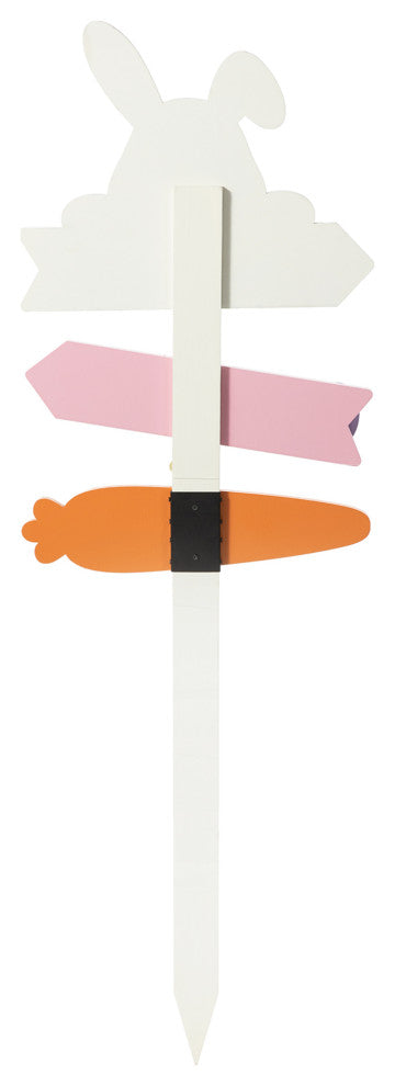 Let"™s decorate your yard for Easter with this wooden Stake. Topped with an adorable bunny, layered with the colorful welcome signs read "�Bunny Trail"�, "�EGG HUNT"� and "�Carrot Farm"�. The unique design makes it look more realistic and vivid, which will bring more fun to your garden, and warmth to your family and friends. Perfect for Easter gatherings and brings a festive and charming atmosphere to your yard and home.1. Whimsical decoration and artfully crafted2. Material: 30%Wood, 65%Polywood, 5%Metal3. Simply assembly required