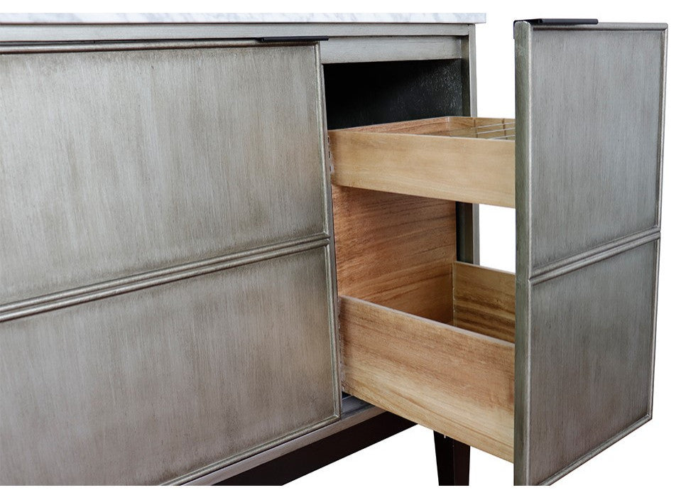 The Scandi collection by Bellaterra Home features is a traditional cabinet with a modern twist. It is constructed with solid oak and birch veneer. On all corners, it has full corner block for stability and additional support for the counter top. It is hand applied with multiple layers of ecofriendly stain and top coat to prevent pealing, cracking and fading. The interior finish is consistent throughout and matches the exterior finish. This cabinet offers immaculate styling while concealing a fantastic amount of storage behind a set of doors. The interior drawer is constructed with English dovetail and smooth full extension glide. This collection is offered in two configurations, wall mount or freestanding, and also, a variety of finishes and designs. Each cabinet is configured to work with our variety of countertops or any standard size tops. These elegant bathroom vanity top features a 1.3� thick Gray Granite preinstalled with a white cUPC certified white ceramic sink and a matching 4 in. H. backsplash is available for purchase to complete the utmost beauty and functionality. It will easily match many home interiors. The vanity top is pre-drilled with 3 holes for a wide spread faucet. Bellaterra Home�s counter tops are pre-sealed and polished for added protection. All genuine stone material has its variation of veining pattern and color; every top will be slightly different.