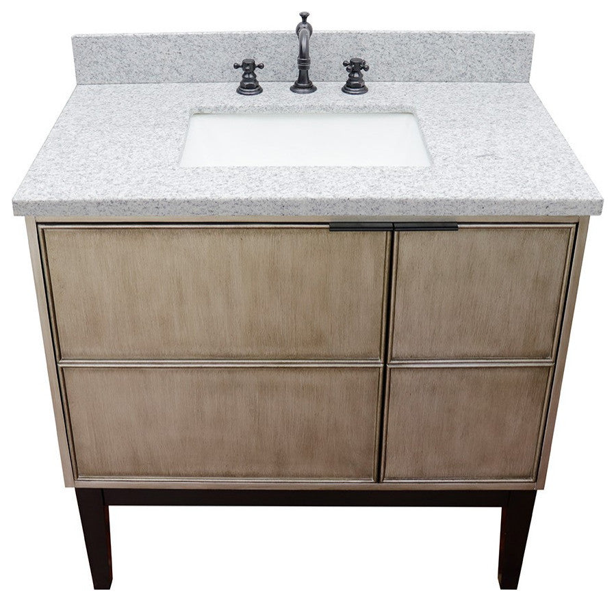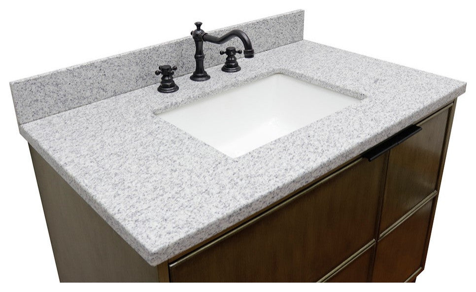 37" Single Vanity, Linen Brown Finish With Gray Granite Top And Rectangle Sink