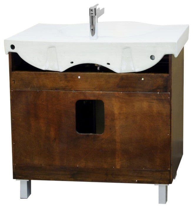 Add a unique contemporary flare to your home''s decor with this modern style design sink chest vanity. The medium walnut finish is refreshing and will surely add to your home''s ambiance. Three door panels with soft close hinges, two Functional drawers with ball bearing drawer glides provide all storage necessity for any bathroom without compromising. Dimension: 39.8Wx18.5Dx34.8H, Birch, Medium walnut, White Ceramic, White ceramic sink, Nickel finish hardware, Pre-drilled with 1 hole - One slot faucet, faucet and mirror not included, Slight assembly required
