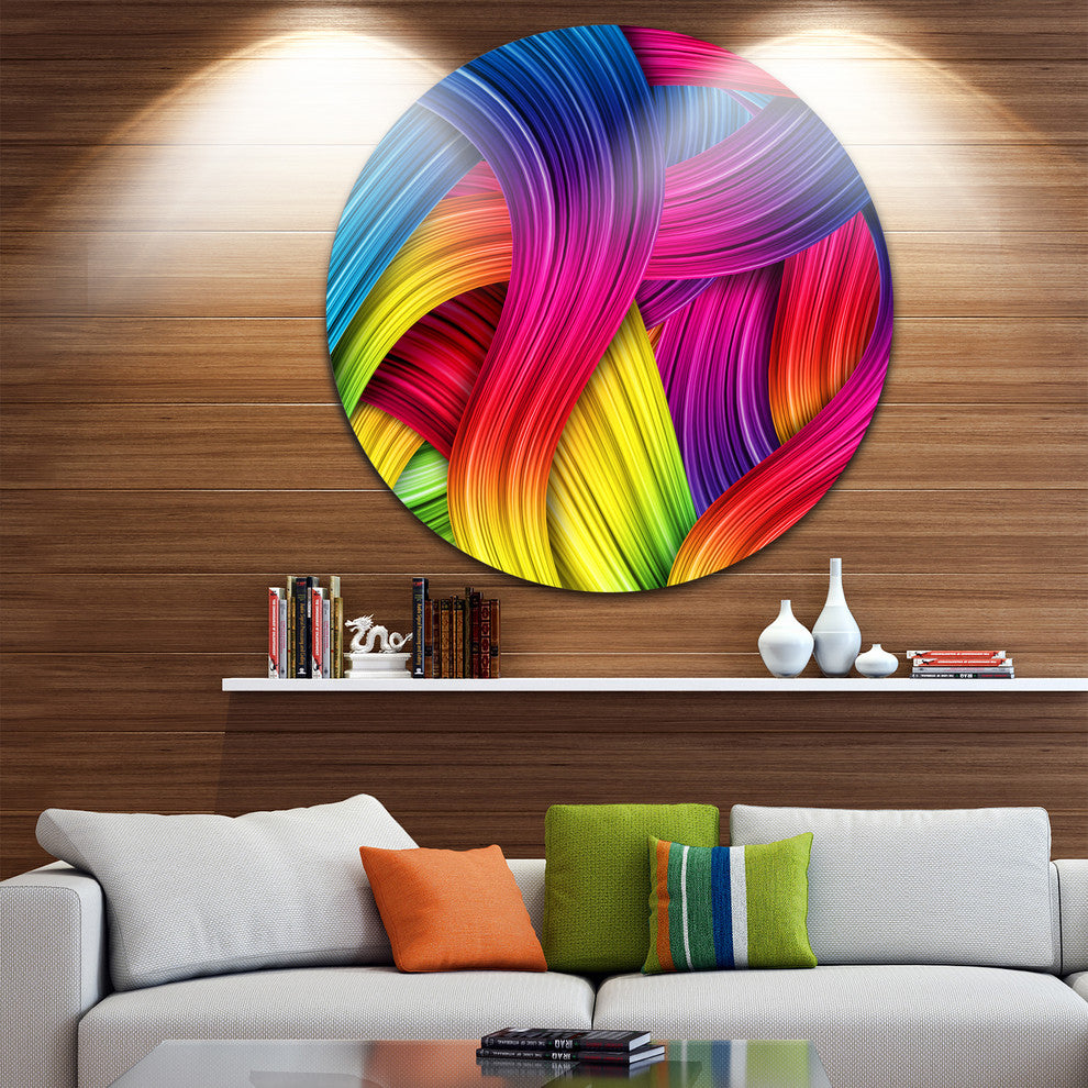 Bring Contemporary Abstraction to your home with this large Circle Metal wall art. This 3D Rainbow Art Metal Artwork makes it the focal point of any room or office.