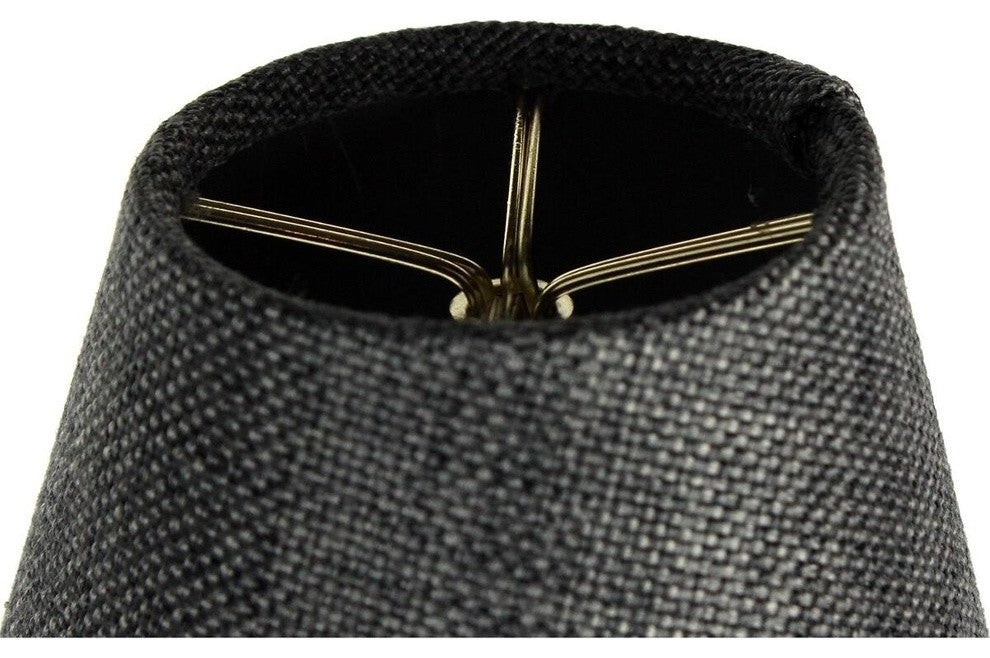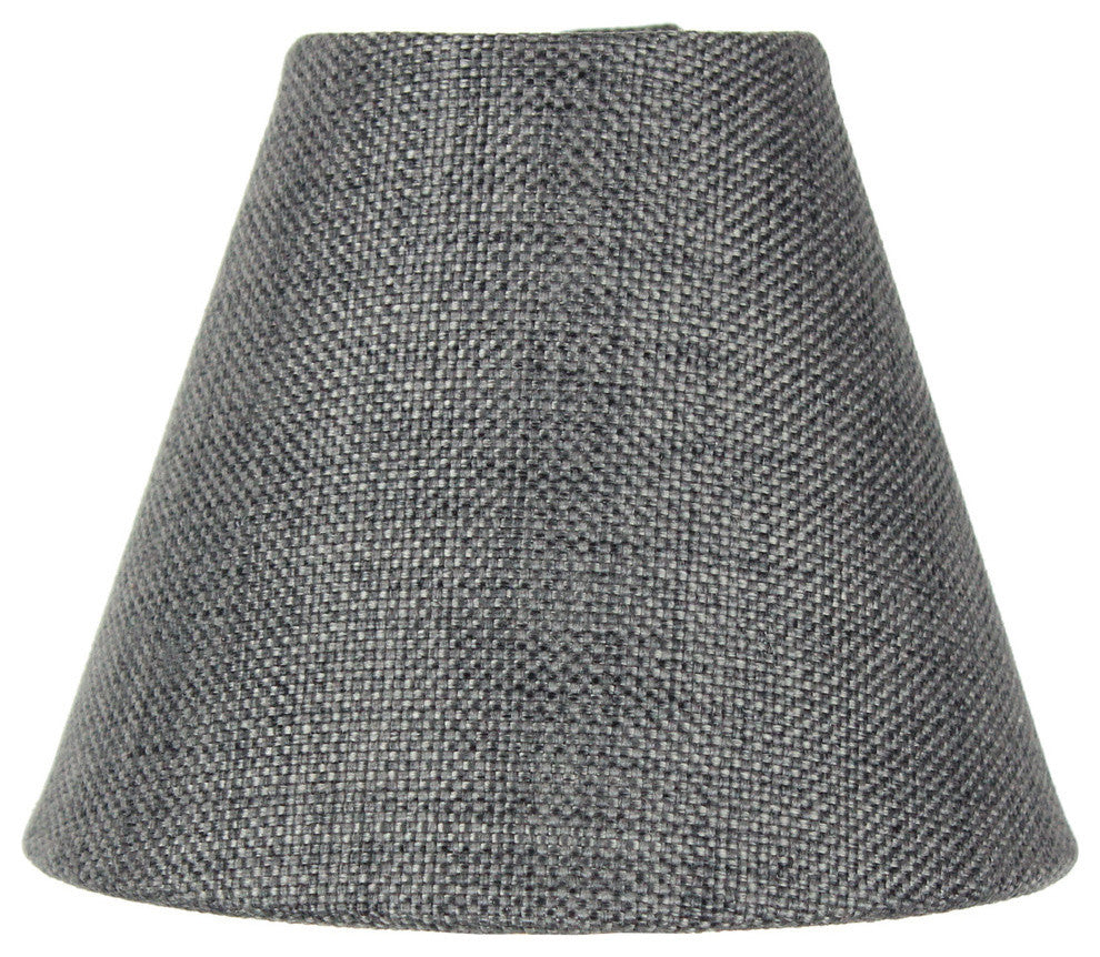 Home Concept Signature Shades feature the finest premium hardback burlap fabric . Durable burlap fabric  means your new lampshade will last for years. It wont get brittle from smoke or sunlight like less expensive shades. Heavy brass and steel frames means your shades can withstand abuse from kids and pets. It''s a difference you can feel when you lift it. Granite Gray Burlap fabric is a blend of black, gray and brown (if you look close enough you can pick out all 3 distinct colors) From a distance it looks dark (granite) gray Grey Fabric Liner; Includes Double Candle Clip with 1/2 drop, design to sit atop of your lamp Top shelf hardback lampshade, found in better lighting showrooms. Durable Hotel quality shade. 3 Top x 5 Bottom x 4 Slant Height Height is measured on the slant in a straight line, it is not the vertical height
