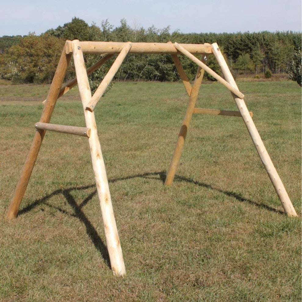 4'' A-FrameNeed a place to hang your porch swing? Try our small A-Frame. It is designed to accommodate a 4 porch swing. Made of Northern White Cedar, it is naturally rot and insect resistant. With our heavy duty construction it will last for years to come. Many or most of the logs will have cracks. These cracks are called checks. Checking occurs when the logs dry and the cells shrink causing the wood to split. This does not weaken the wood. Checking helps give cedar furniture its rustic beauty. Made in the USA.Features: