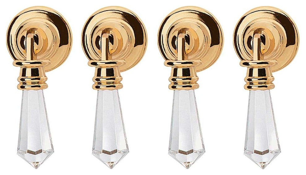 Item 88273 (4) pieces This acrylic drop pull is 2-1/4 in. long on a 3/4 in. diameter backplate of polished and lacquered brass. It has the look of crystal without the crystal price.