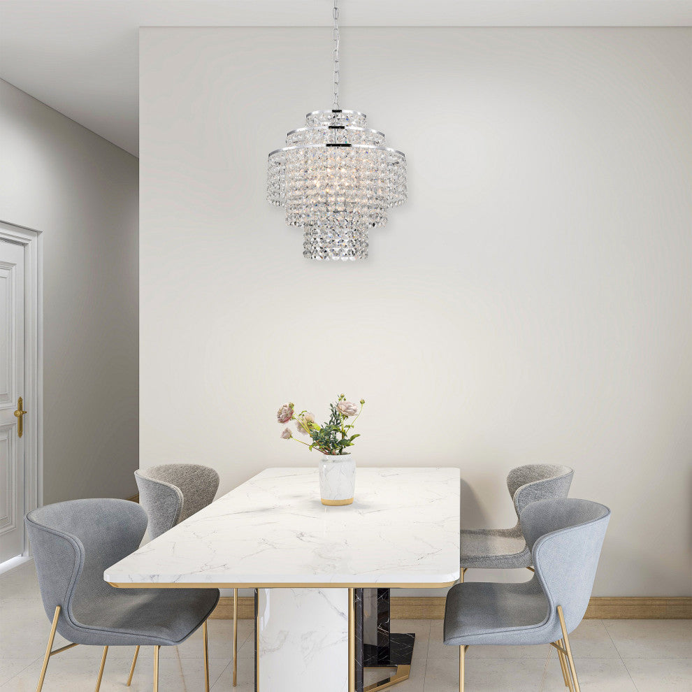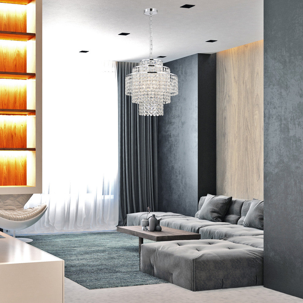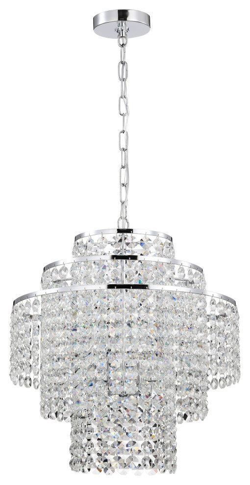 4-Light Chrome Modern Glam Chandelier With Tier Cascading Crystals