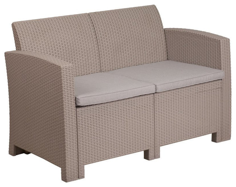4 Piece Outdoor Faux Rattan Chair, Loveseat and Table Set, Light Gray