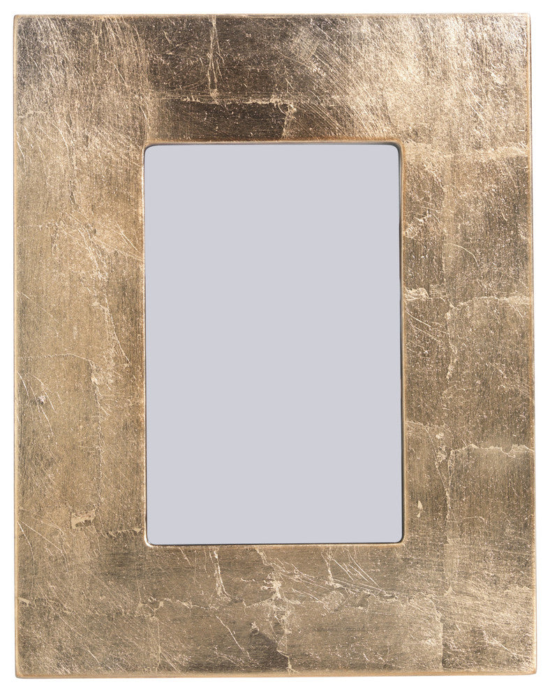 Our striking Gold Leaf Frames make the most of your memorable moments, surrounding photos in a wide border of gold foil for modern appeal. Designed as a fitting complement to your treasured photographs, our frames effortlessly elevates a wide variety of décor settings. Crafted with versatility in hanging each frame comes with both an easel for tabletop display as well as hooks for wall hanging. Features a painted finish with gold leaf detailingVertical and horizontal displayDesk and wall photo frameMeasures 7"L x 1"W x 9"H