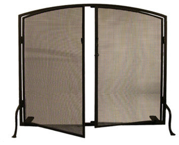 This gothically simple Arched Fire screen has 2 hinged doors making tending your fire easily accessible. The screen has a forged latch and feet, and is finished in a durable Timeless Bronze powder coat. This Fire screen is handmade in the U S A by Meyda craftsman.