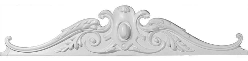 42 3/8"W x 8 3/8"H x 2 1/2"P Kendall Center with Scrolls Onlay. Our appliques and onlays are the perfect accent pieces to cabinetry, furniture, fireplace mantels, ceilings, and more. Each pattern is carefully crafted after traditional and historical designs. Each polyurethane piece is easily installed, just like wood pieces, with simple glues and finish nails. Another benefit of polyurethane is it will not rot or crack, and is impervious to insect manifestations. It comes to you factory primed and ready for your paint, faux finish, gel stain, marbleizing and more.