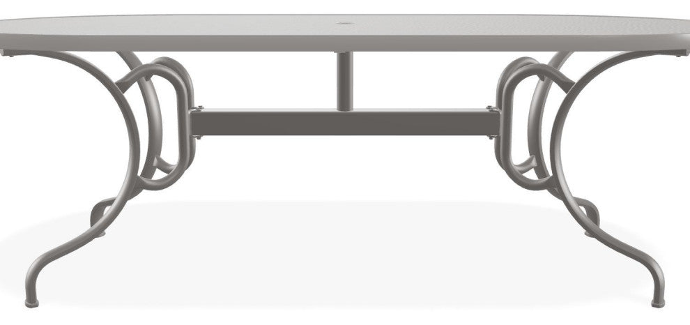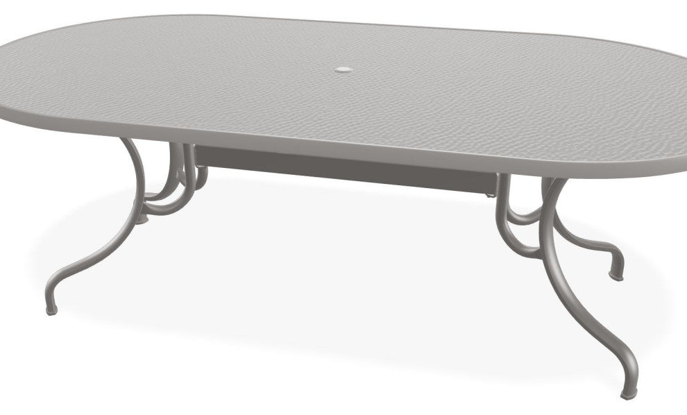 42" x 84" Oval Hammered Outdoor Dining Table with Umbrella Hole, Warm Gray