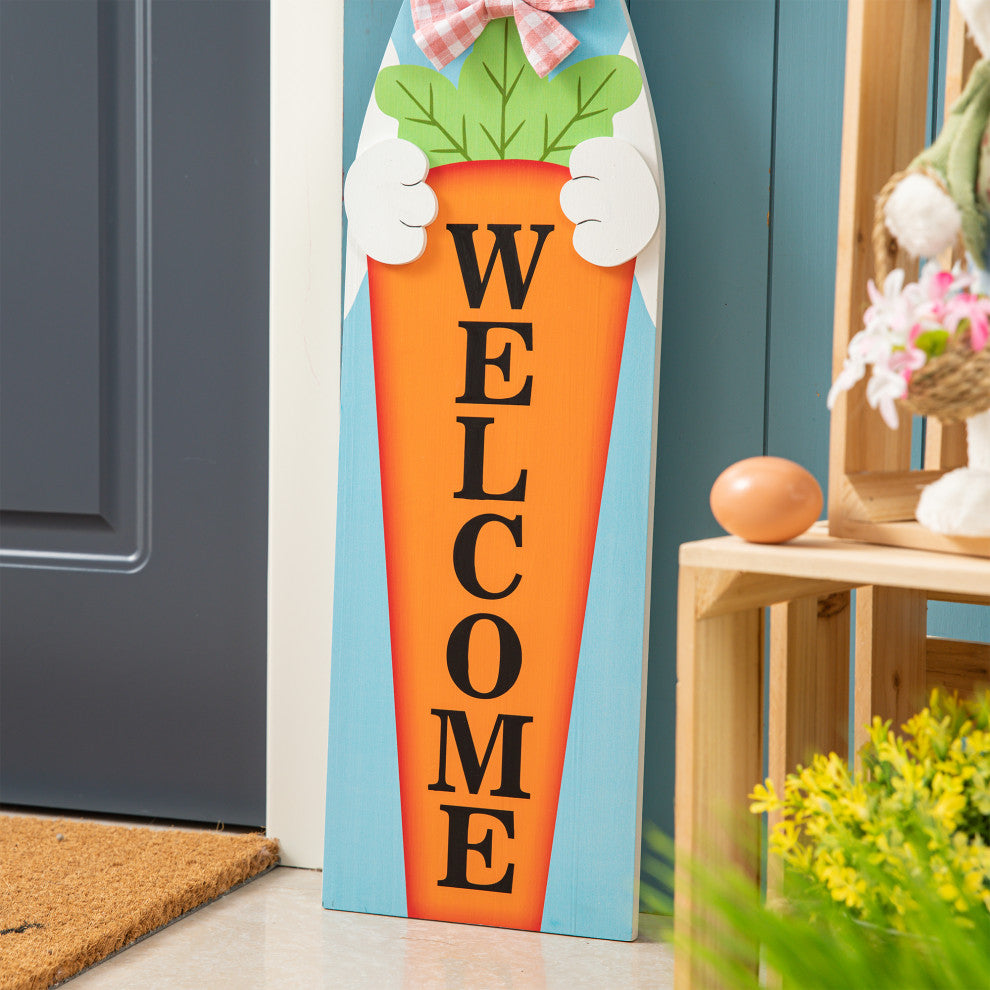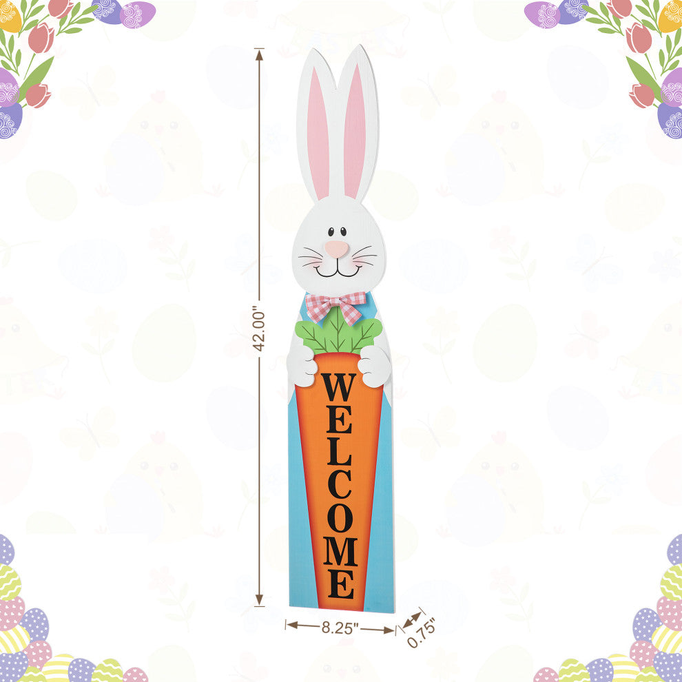 The adorable huge Bunny porch sign will bring joy to your home during this Spring season. It features vertical EASTER sentiments on the orange carrot panel. It''s a lovely accent to place on front porch or entryway. Stylish design with classical bunny and carrot brings you a holiday feel to your home.