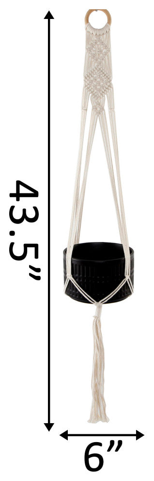 43" H hanging macrame planter hanger. Lovely indoor Decor. Great for indoor planters. Measurement(inch): 43.5 x 2.5 x 0.75. Material: Rope. Color: White• •  for Indoor use only.