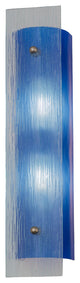 Rendering a sleek architectural look, this lighting design melds color with texture to create beautiful ambient illumination for any room. Streamlined Clear Textured glass is displayed at the forefront with Royal Blue curved art glass and accentuated with Nickel finished studs. Wall sconce artistry is created by the hands of highly skilled artisans at our manufacturing facility in Upstate New York in the USA. Custom sizes, styles and colors are available, as well as dimmable, energy efficient lamping options. UL and cUL listed for damp and dry locations.
