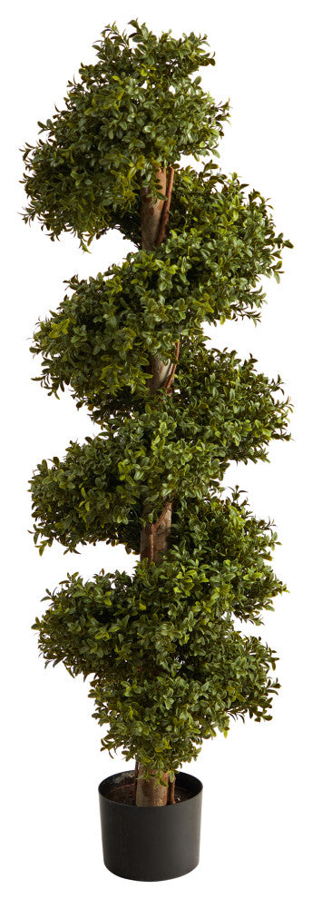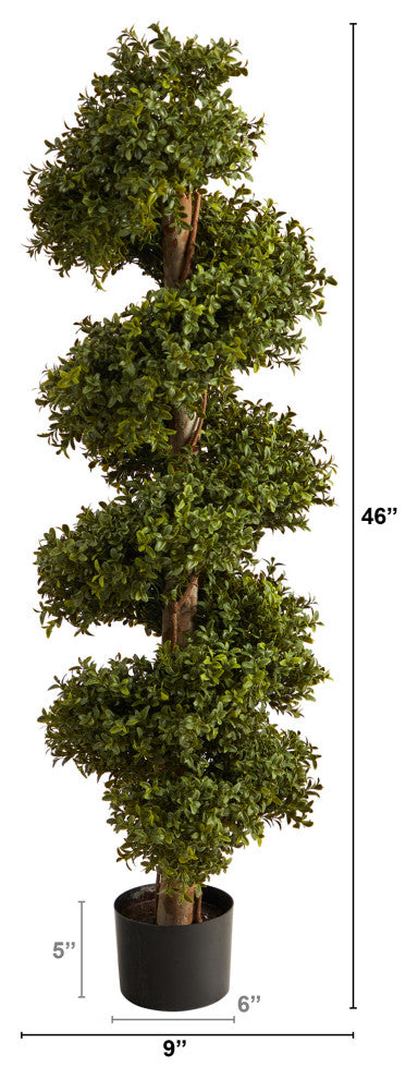 Whirl around this whimsical Artificial Boxwood Topiary Spiral Tree. Exotic to the eye, bring posh, jungle vibes with the twirling greens adorning a trunk like silhouette that delivers a subtle, yet rustic look. Standing 46'' from a black planter (included in height), curate in rooms that need a little green. Perfect for compact spaces like foyers, apartments, or awkward corners. Pair in multiples for cohesion.Silk trees are manufactured using synthetic materials, such as polyester material or plastic, and are well designed and constructed to be life-like in appearance. This item will need to be re-shaped when removed from the secure box to allow it to reach its fullest size. Your artificial plant will look beautiful for years to come; simply wipe clean with a soft dry cloth when needed.