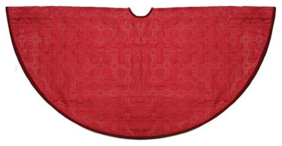 Add some fun to your holiday decor with this festive tree skirtFeatures a classic geometric quilted design and soft velvety trimThis is not a toy; for decoration onlyWhen used with live trees be sure to protect surface from waterSpot clean with mild detergent do not washVelcro closure for easy installationMaterial: PolyesterDimensions: 48" diameter