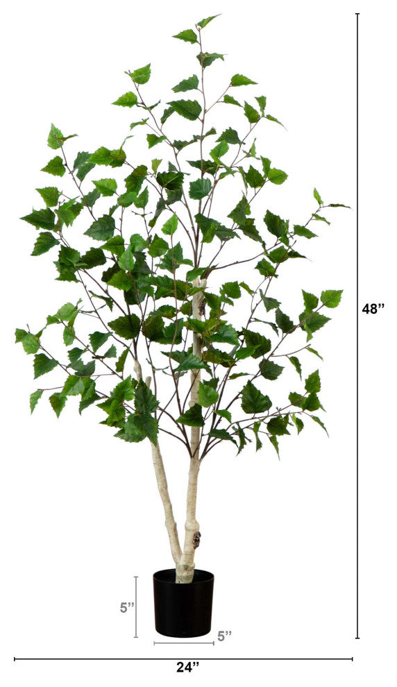 Experience the serene beauty of birch trees throughout the year with these nature-inspired artificial birch trees. Expertly crafted by experienced horticulturists using high-quality materials, these trees capture the essence of real birches with their light-hued bark and leaves oriented in various directions, mimicking nature''s diversity. The branches are designed to be flexible, allowing you to shape them for a tailored, unique look that suits your space. Standing at 4'' tall from a nursery planter, these birch trees are perfect for adding a touch of life and tranquility to any room, regardless of style or size.
