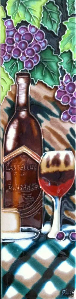 4x16" Wine With Blue Checkered Table Cloth Wall Decor Tile