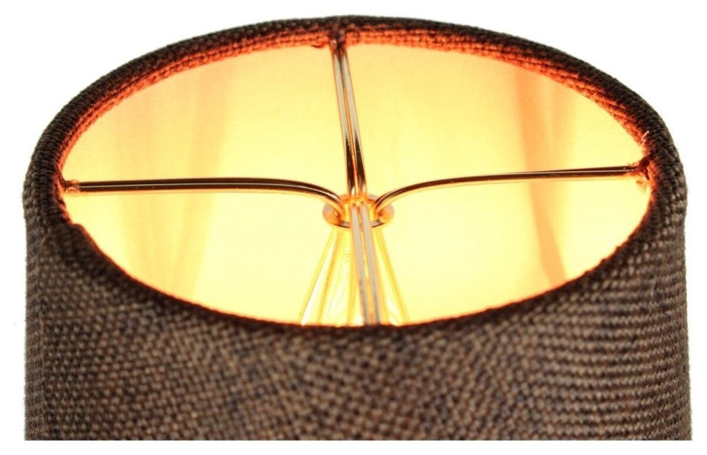 Home Concept Signature Shades feature the finest premium fabric. Durable fabric means your new lampshade will last for years. It wont get brittle from smoke or sunlight like less expensive shades. Heavy brass and steel frames means your shades can withstand abuse from kids and pets. It''s a difference you can feel when you lift it.Premium Chocolate Burlap Fabric Lampshade w/ Beige LinerIncludes a Dual Clip-On Fitter designed to sit straighly atop your candelabra bulb)Elevate your home decor with a deluxe quality lamp shade from our Modern Classics Collection, sold exclusively through authorized lighting showrooms. Durable Hotel-tough lampshade.4.5"x5.5"x5.25"(Top x Bottom x Slant Height) Height is measured on the slant, not straight vertical.Perfect upgrade for living room, bedroom, office, hotel or officeClip on will fit candelabra sized light bulbs used in chandeliers. Dual Clip ensures shade will stay in exact position