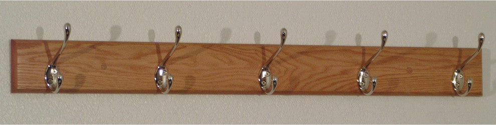 5 Hook Coat Rack, Light Oak, Light Oak/Nickel