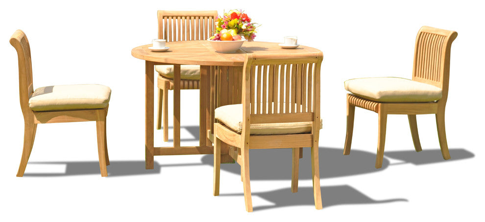 5-Piece Teak Set, 48" Butterfly Table, 4 Giva Chairs, Sunbrella Cushion, Canvas