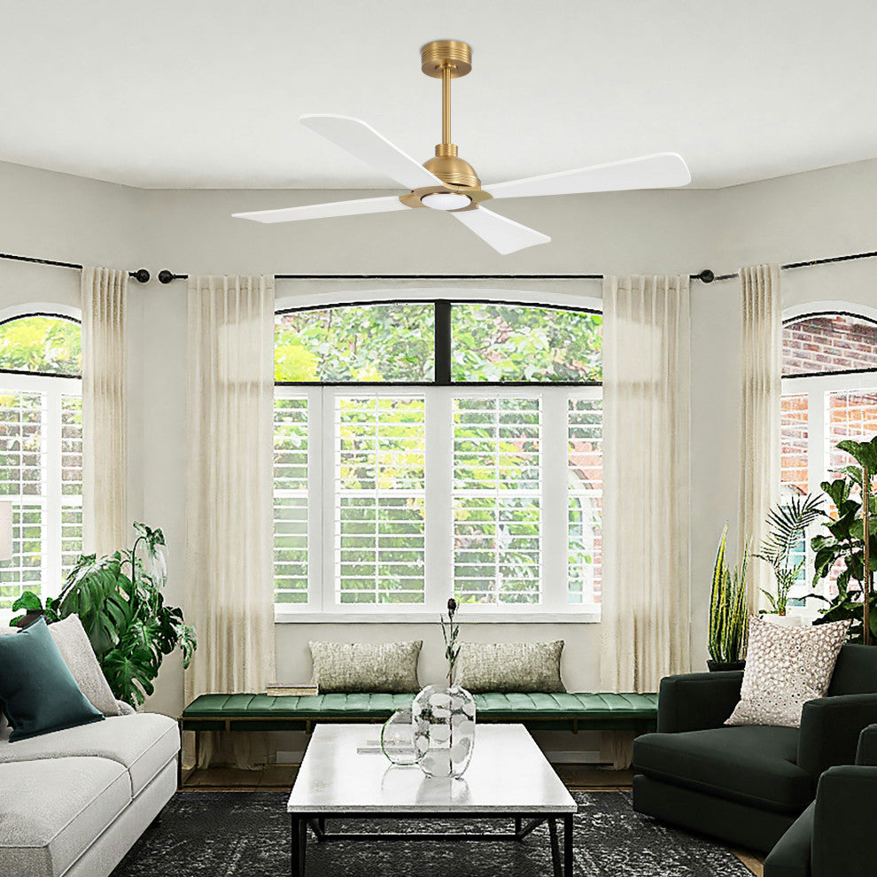 56" 4-Blade Solid Wood Ceiling Fan With LED Light and Remote Control, Gold/White