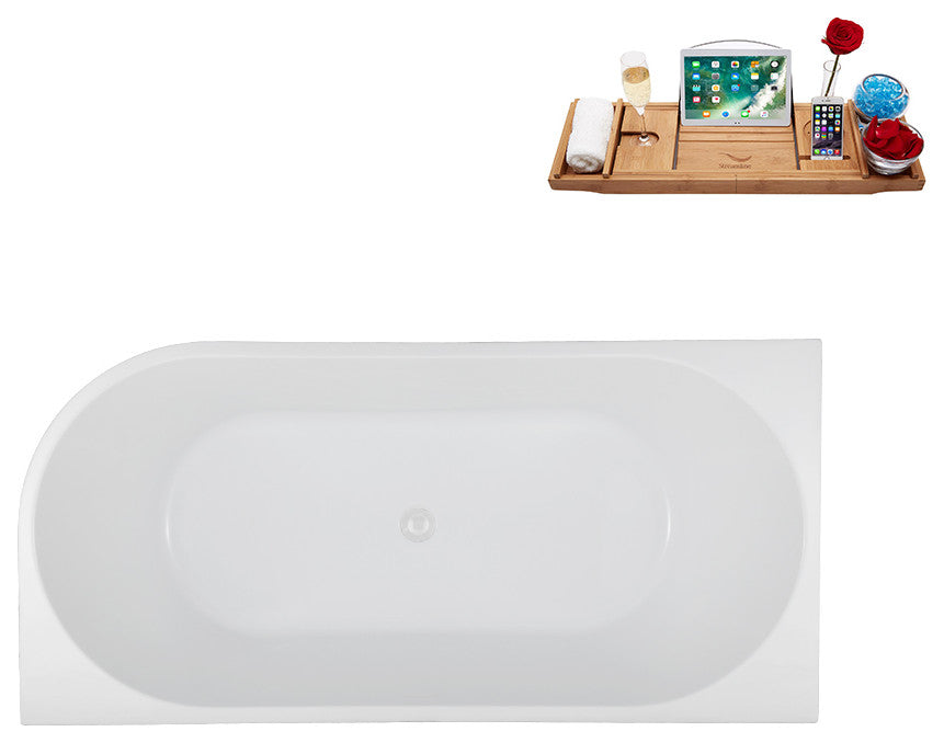 59" Streamline N4020WH Soaking Freestanding Tub and Tray With Internal Drain