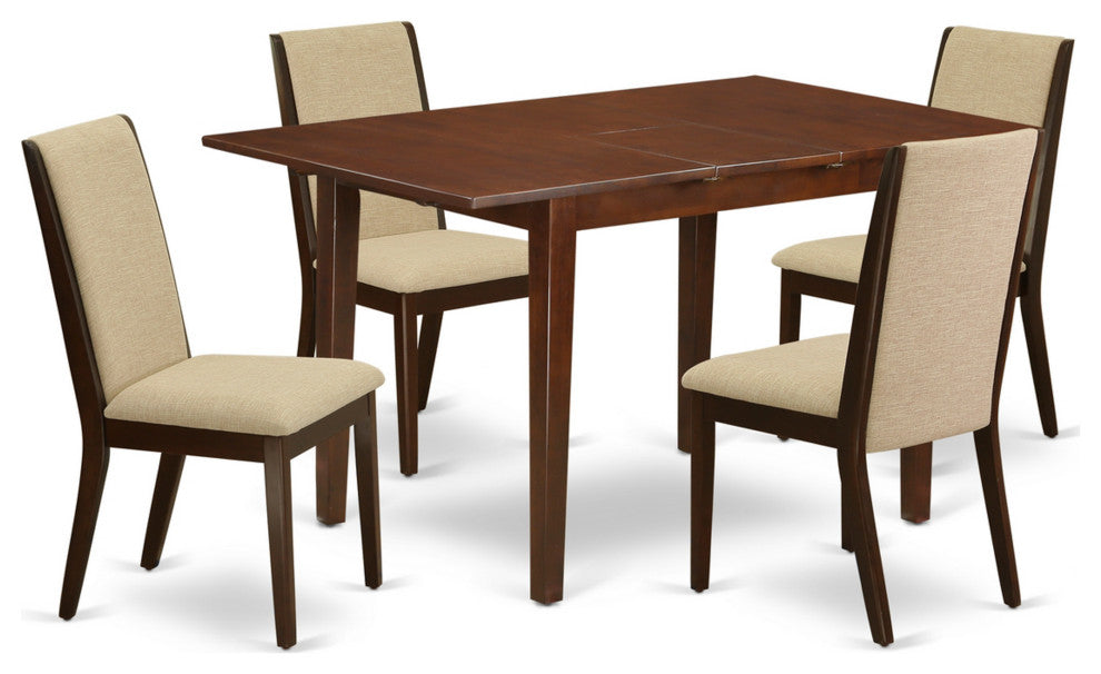 5Pc Dining Set - 4 Upholstered Chairs, Butterfly Leaf Table Hardwoo, Mahogany
