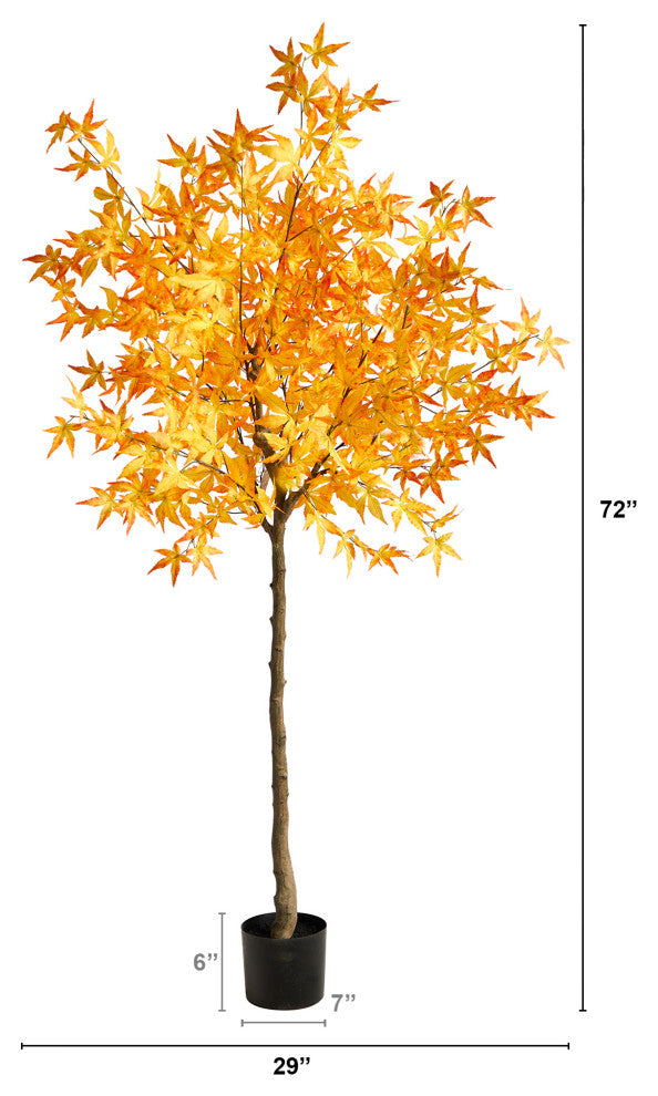 Remind yourself of the most spectacular foliage in the world with this Maple Artificial Tree. Inspired by the Northeast''s landscape, bring the fall foliage home by injecting vivid colors in your space with these lifelike maple leaves assembled from high-quality materials. Standing 6ft. from a nursery planter (included in height), house in any compact area. Perfect for Thanksgiving, living rooms or a fall-inspired room. Artificial trees are manufactured using synthetic materials, such as polyester material or plastic, and are well designed and constructed to be life-like in appearance. This item will need to be re-shaped when removed from the secure box to allow it to reach its fullest size. Your artificial tree will look beautiful for years to come; simply wipe clean with a soft dry cloth when needed.